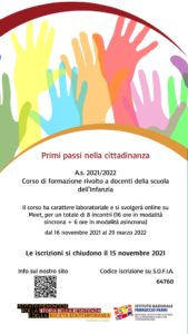 - Primi passi nella Cittadinanza – iscrizioni sulla sulla piattaforma S.O.F.I.A. codice 64760