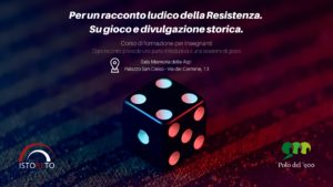 In risposta alla crisi dell’insegnamento della storia, si propone un corso di formazione per insegnanti per mettere a fuoco il ruolo del gioco nel coinvolgimento delle classi sul tema della Resistenza nel suo significato più ampio e contemporaneo. Il gioco diventa così per gli insegnanti un attivatore di interesse per la storia da utilizzare in aula e anche motore di ricerca didattica.