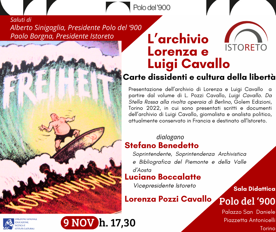 Per la prima volta un’estesa raccolta di documenti e scritti, ampiamente contestualizzati, Lorenza Pozzi Cavallo, nel volume Luigi Cavallo. Da Stella Rossa alla rivolta operaia di Berlino, Golem Edizioni, Torino 2022, presenta la vicenda biografica, politica e intellettuale di Luigi Cavallo (Torino 1920 – Béziers 2005), giornalista e analista politico.