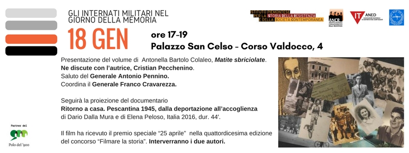 In occasione della posa della pietra d’inciampo a Balbo Bertone di Breme, prima a Torino dedicata a un internato militare, Istoreto, Ancr, Anei e Aned ricordano le vicende degli IMI con la presentazione del volume di Antonella Bartolo Colaleo, Matite sbriciolate, (Gaidano&Matta edizioni). Ne discute con l’autrice Cristian Pecchenino.