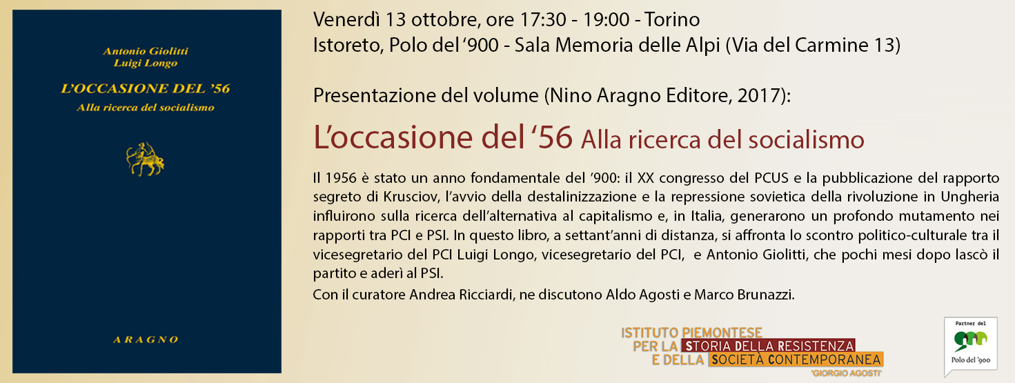 Il 1956 è stato un anno fondamentale del ’900, non solo per il mondo comunista. Il XX congresso del PCUS e la pubblicazione del rapporto segreto di Krusciov, l’avvio della destalinizzazione e la repressione sovietica della rivoluzione in Ungheria influirono sulla ricerca dell’alternativa al capitalismo, mettendo in discussione il socialismo reale come mai era avvenuto prima e, in Italia, generando un profondo mutamento nei rapporti tra PCI e PSI. In questo libro (Aragno, 2017) si affronta lo scontro politico-culturale tra il vicesegretario del PCI Luigi Longo e Antonio Giolitti che, nei primi mesi del 1957, si sostanziò in un’aspra querelle ideologico-editoriale che portò Giolitti, critico verso la linea di Togliatti, a dimettersi dal PCI.