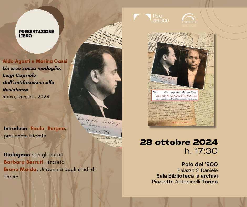 Barbara Berruti (Istoreto) e Bruno Maida (Unito) dialogano con Aldo Agosti e Marina Cassi, autori del libro Luigi Capriolo. Un eroe senza medaglie (Roma, Donzelli, 2024).