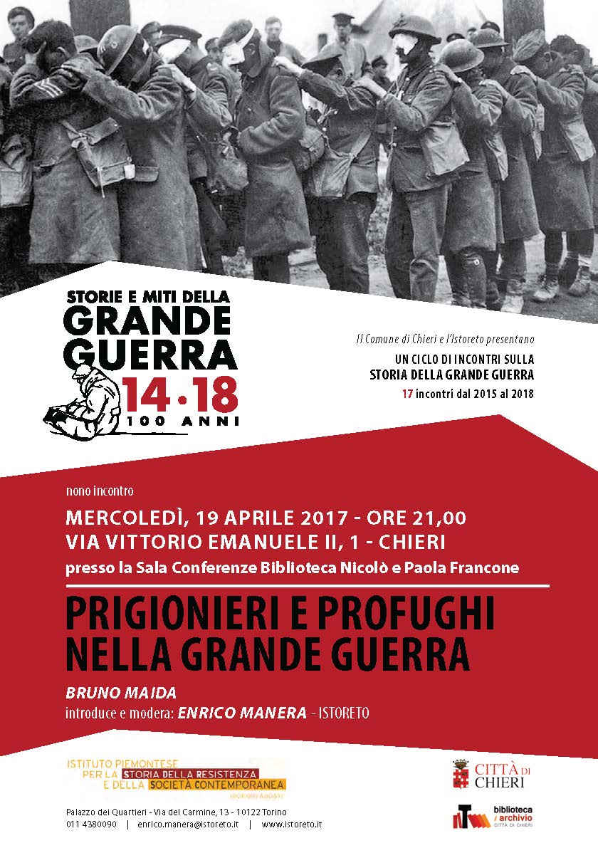 Per il ciclo di incontri “Storie e miti della Grande guerra”, l’incontro affronta il tema Prigionieri e profughi nella Grande guerra. Relatore Bruno Maida. Modera Enrico Manera. Promosso dal Comune di Chieri e a cura dall’Istoreto.