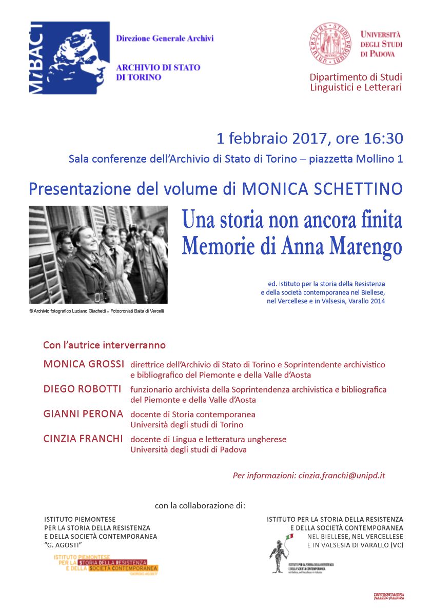 Presentazione del volume di Monica Schettino Una storia non ancora finita. Memorie di Anna Marengo (ed. Istituto per la storia della Resistenza